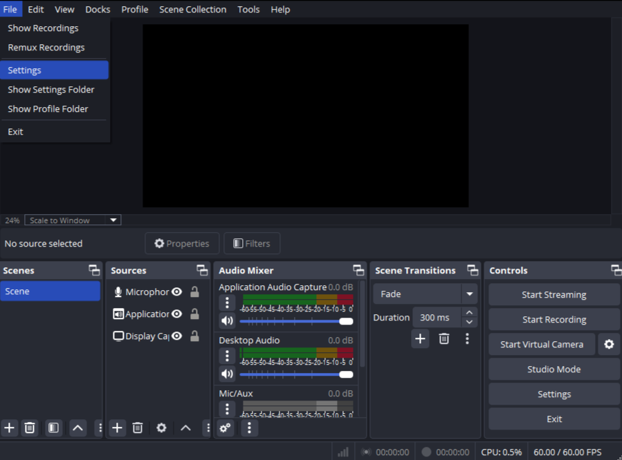Optimizing your video settings in OBS is essential for smooth streaming and recording on low-end PCs. To do that, simply click File – Settings – Video. Here’s what you should focus on: