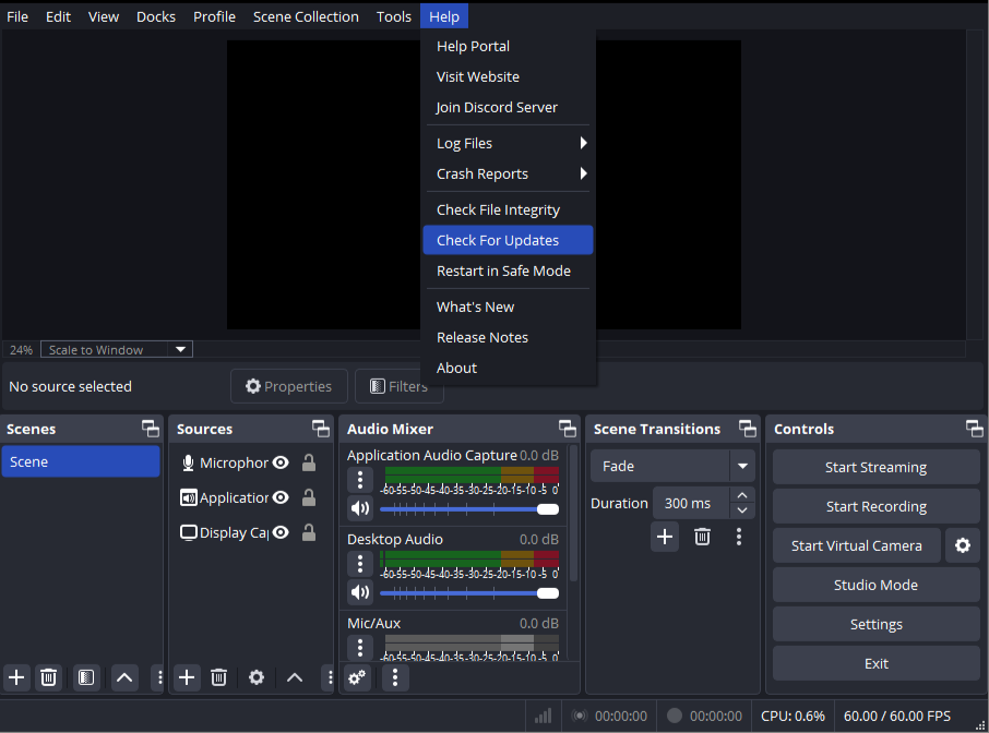 After installing, regularly check for updates within OBS by clicking Help – Check for Updates.